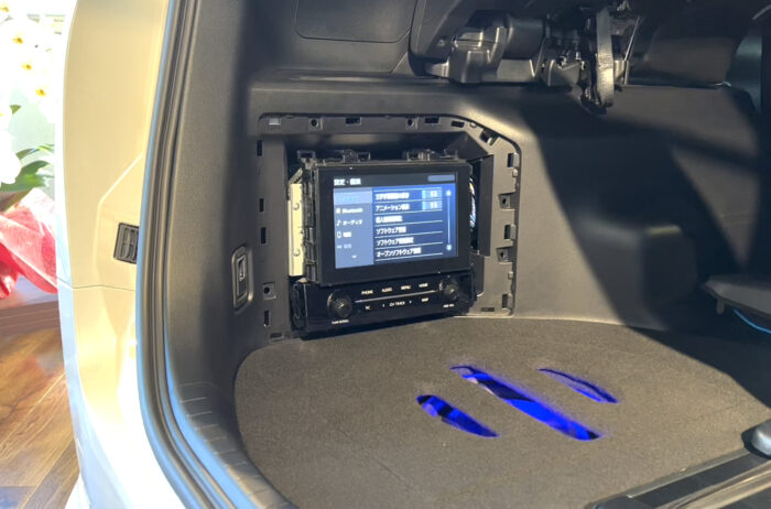 詳しくは分かりませんが音の重要な部分である臨場感を出すためにサブウーファーがバックドア付近に装着されており、フロア部とパックドア部に装着できるようになっています。(数は選べます)
