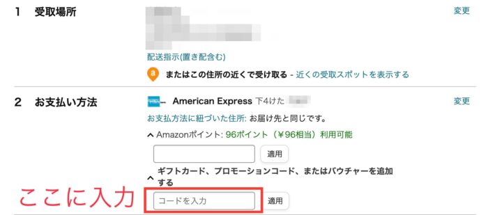 下記の画像の所にコードを入力すればお得に買えるんですよね。